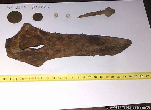 15. 04. 2011, 05:07Ahoj, v neděli se mi zadařil stejný kop. Slepíšek neměl ani 10 cm:-) Sekerka se teda nedařila, zatím jsem se s nálezy nedostal pod rok 1500, takže za sebe moc gratuluju.