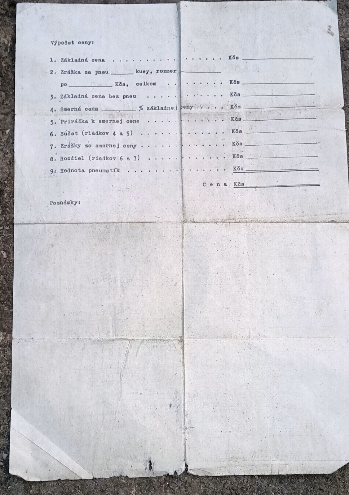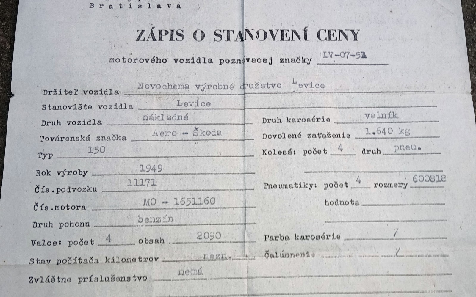 Povalovka dokument od starého nakladaku Aero - Škoda typ 150.