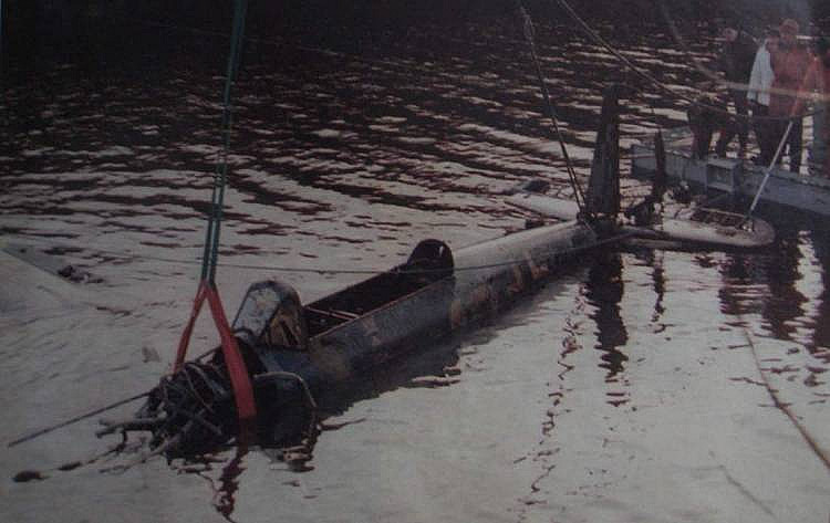 Letadlo kleslo do bahnitého dna jezera, do hloubky asi 35 metrů. Kdekdo na Boemlo přesně věděl kde, neboť během padesáti let, kdy Arado leželo na dně, stále unikalo malé množství olejovité substance na hladinu a zbarvovalo ji. Skvrna na hladině nikdy nezamrzala, a rodiče v zimě děti obzvláště varovali: Nechoďte k letadlu!!