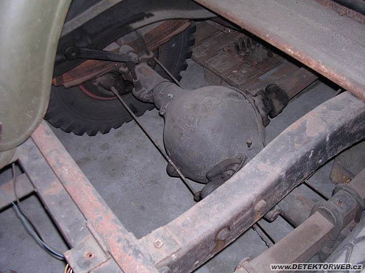 No na samotným šásku bude ještě dost práce. Po válce sanitu přestavěli na hasičák, takže je na ní plno přebytečnýho železa. Maska je z civilního náklaďáku, asi K4 a zadní část kabiny je z vojenskýho náklaďáku. Brzdy jako by nebyly, úplně hluchý, elektoinstalace Bosch, kapota je uříznutá, to nevím co bylo důvodem aj. drobné vychytávky. Tak trochu napadeno kutilem, respektive upravující dílnou.