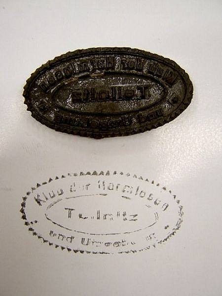 Prosím kdo umíte německy, přeložíte mi tu stříbrnou medaili (tu hasičskou či co to je) a text z toho razítka??? A kdyby někdo věděl z čeho pochází ten medailon s hrajícím muzikantem pod okny ať prosím taky poradí.