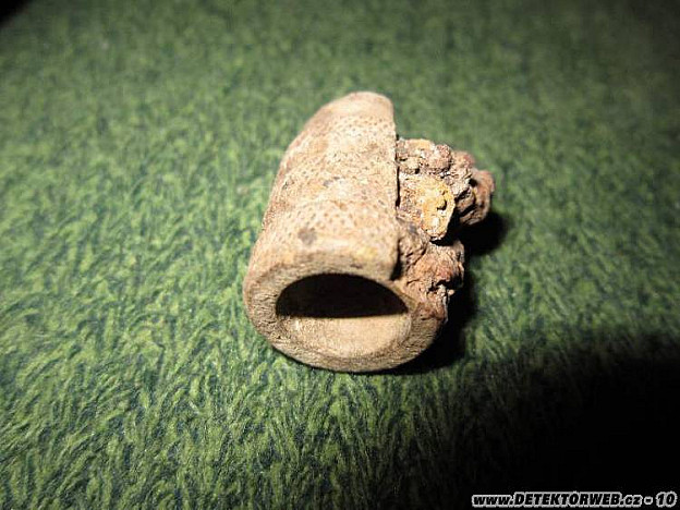 14. 02. 2012, 18:00Na fotce 6 a 7 vidím RU zápalku z pušky či pistole, je to ten malý "kalíšek" se 4mi chlopněmi vyhnutými ven. Po naládování zbraně a natažení kohoutu se nasadila na piston. Následným úderem kohoutu se iniciovala třaskavá směs kterou byla naplněna a došlo k výstřelu.