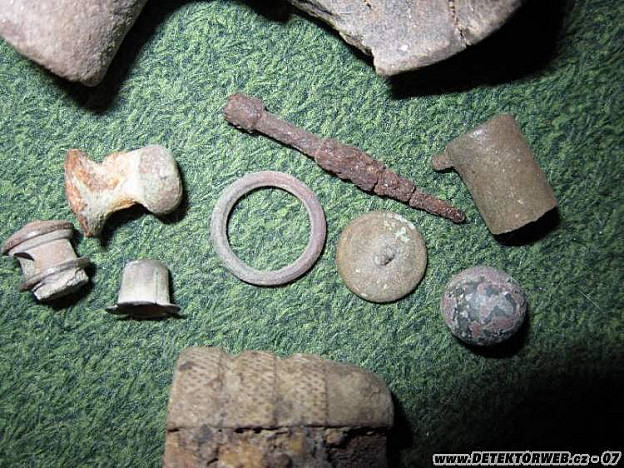 Na prvních fotkách je munice obou válčících stran, jak kule z pušek, tak z "kartáčů". Dále střepiny z dělostřeleckých granátů, jak železné, tak jejich slitinových plášťů. A kuriozitka, při výkopu jedné z mnoha kulí vypadla dřevěná fajfka, která možná kdysi patřila nějakému vojákovi, kdo ví.