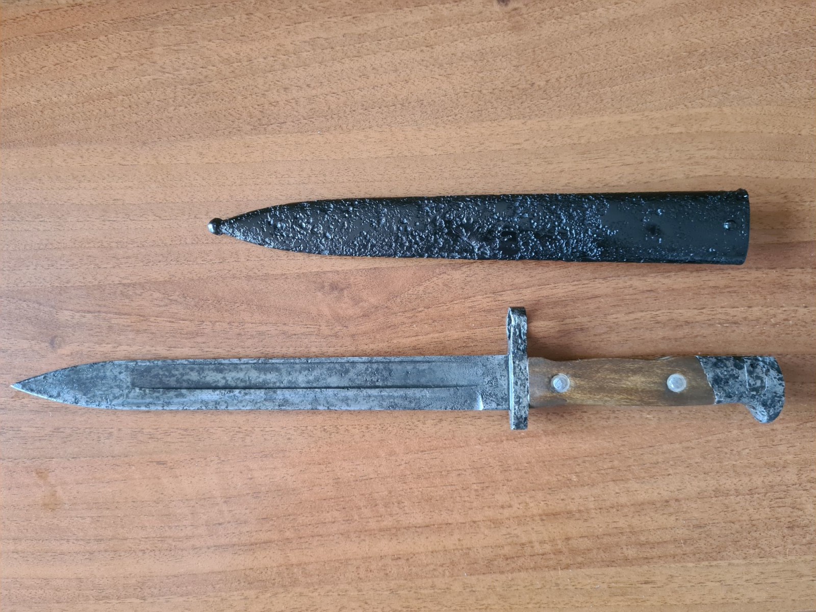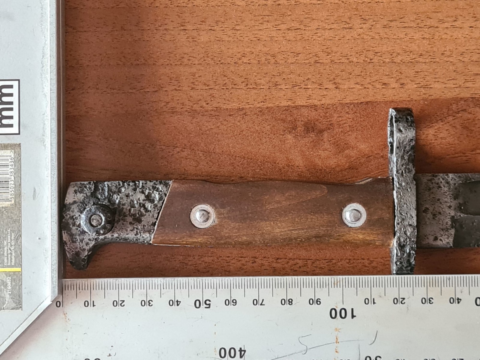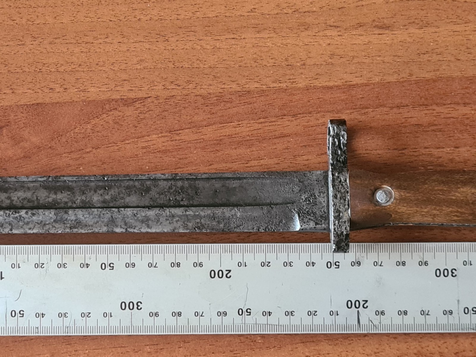 potreboval by som poradit s identifikaciou. Podla worldbayonets by sa malo jednat o RU exportny model M1871/84 pre gewehr 88, ale nesedia rozmery. Podla greatwarforum je to bud M1893 Rumun, alebo M1904 Irsko.