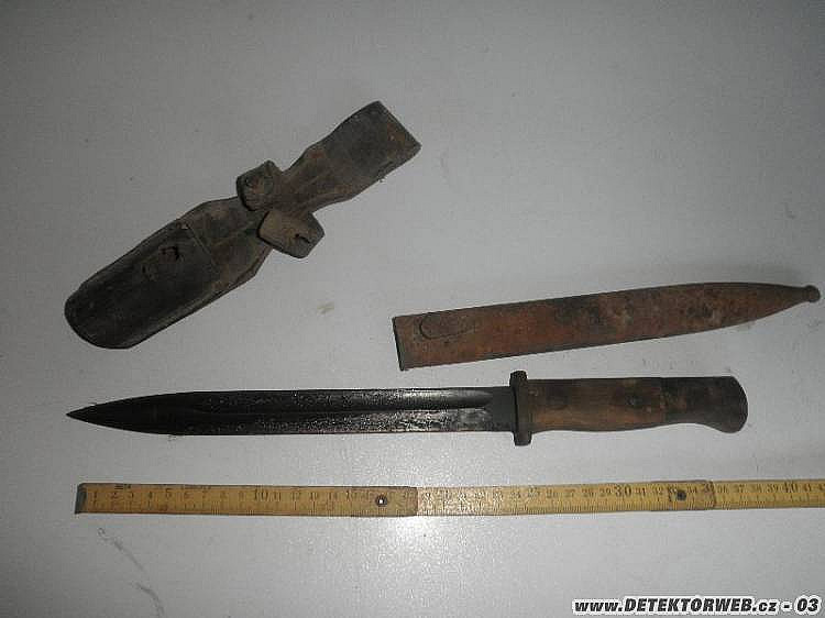 06. 08. 2014, 13:50Stejně tak může jít i o bodák z továrních skladových zásob, prostě a jednoduše se bodák na konci války již nestačil dorazit značením výrobce a ani nebyl převzat do stavu. A samozřejmě verze o komerčním využití je také možná. Závěsník mohl být k bodáku dodán kdykoliv tedy i poválečně.
