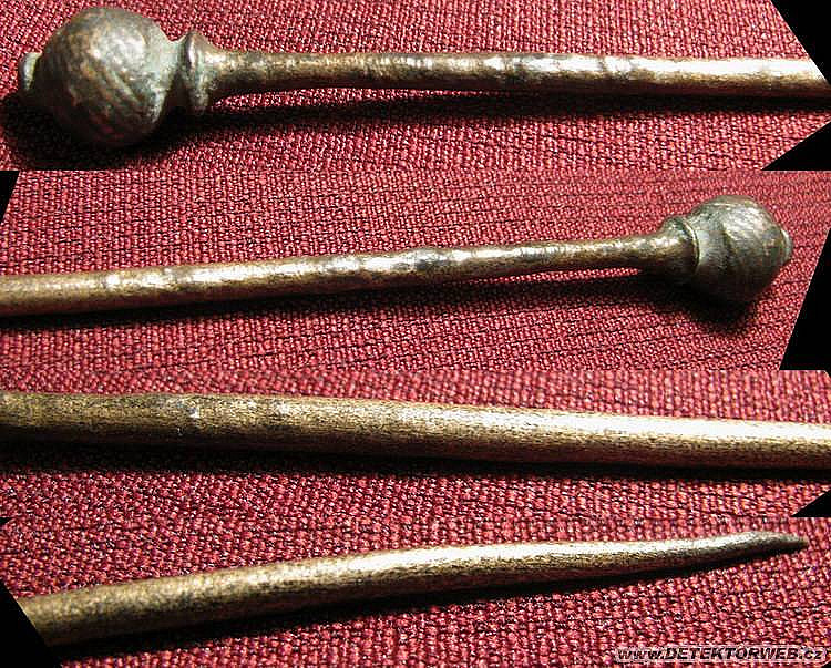 nedávno se mi podařilo, čirou náhodou, získat bronzovou jehlici, kterou zde nyní prezentuji. Bohužel, nemám žádné informace o jejím původu, spolu s řadou "běžných", relativně moderních předmětů ji kdosi přinesl k prodeji do starožitnictví. Nejsem odborníkem na pravěké artefakty, proto se opět obracím na zde jistě přítomné znalce příslušného období a prosím je o vyjádření se k předmětu, jeho možnému původu a především o dataci.