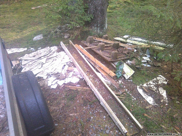 Náš hledač, Vlasta Bašta, bydlí nedaleko Broumova. Po vánocích byl plný síly. Štval ho nepořádek v jeho rajonu. Začátkem února sám provedl úklid tří černých skládek v lese mezi obcí Broumov a hraničním přechodem s Německem. Vlasta mi poslal z úklidu mimo fotek i mapku, kde uklízel. Na přiložené mapě jsou vyznačena místa černých skládek. Bod č. 1 značí skládku stavebního materiálu (staré dlaždice, dřevěné zárubně, sklo a obaly od stavebního materiálu). Na tomto místě bylo i větší množství plastových autodílů. Bod č. 2 je místo nálezu balíků se starým textilem, časopisy a novinami ze sousedního Německa. Bod č. 3 je místo nálezu staré pračky, vyhozené občanem Německa. Revírník ho potkal den před nálezem nedaleko tohoto místa a potvrdil mi, že vezl tuto pračku na vozíku za autem.