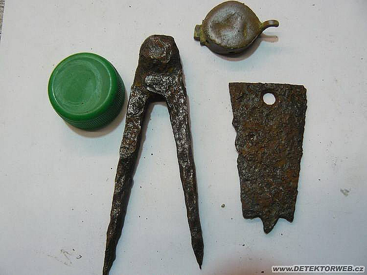26. 01. 2010, 21:08Hezký. Pro podkovy mám slabost. Jsou moc důležité pro štěstí. Tyto jsou z 15. - 16. st. Podle detailů by se to dalo určit lépe. Víčko z fajfky ti psát nemusím. Společně na té fotce vpravo je spodní část plochého vrtáku do dřeva.