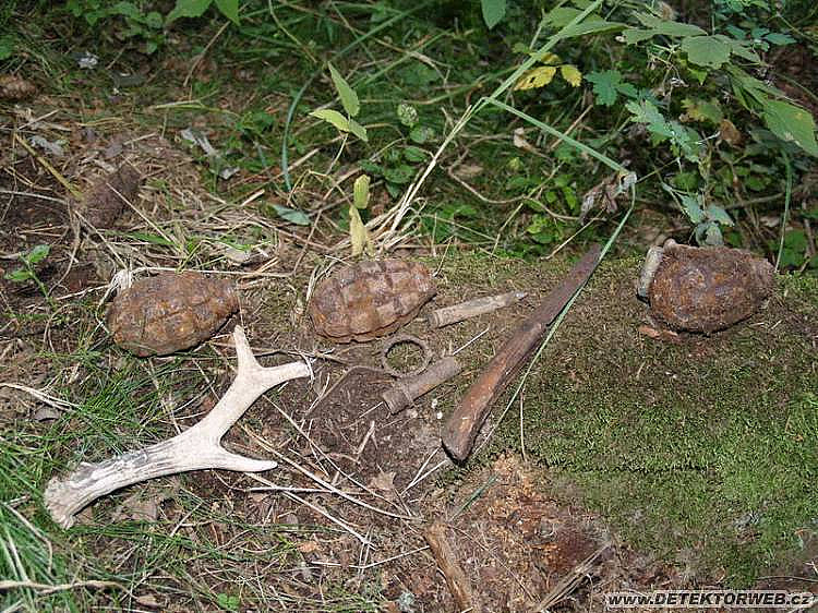 Když opomenu tu všude rozházenou munici – Tokarev a sem tam Mosin, byl výsledek celkem hubený. Nějaké zapomenuté F1ničky a roznětka, nůž co kdysi asi ztratil houbař (neví někdo co je to za typ nože?? druhé foto), srnčí shoz, mincička a další drobotina.