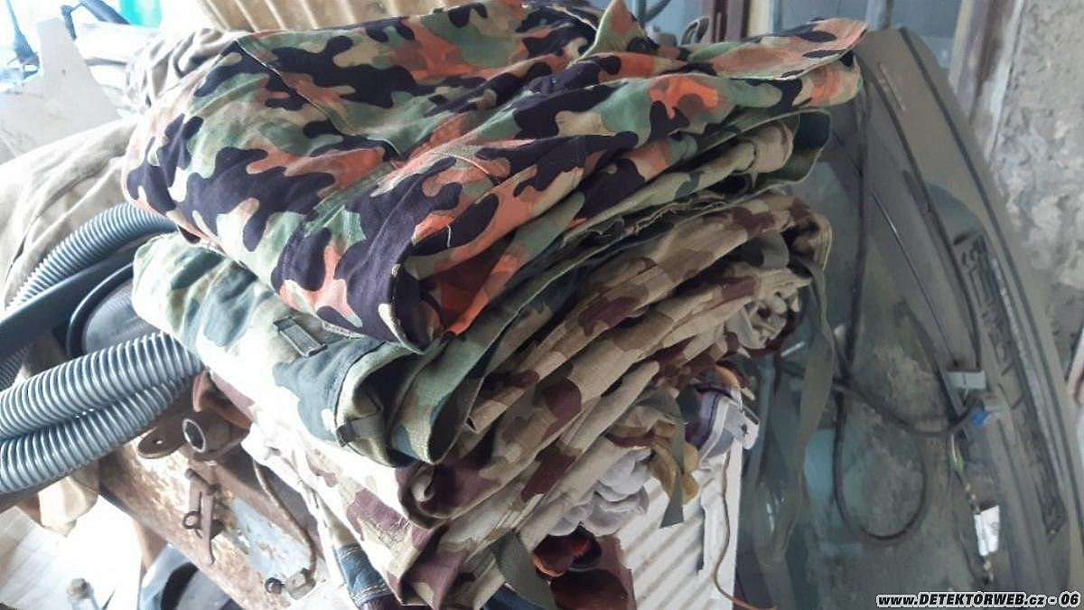 01. 07. 2021, 13:54Maskovací převleky z 50. let. Z každé strany je jiný vzor. Převzato podle sovětského vzoru z 2. světové války. Jsou na nich poutka na zastrkávání větviček, trávy apod.