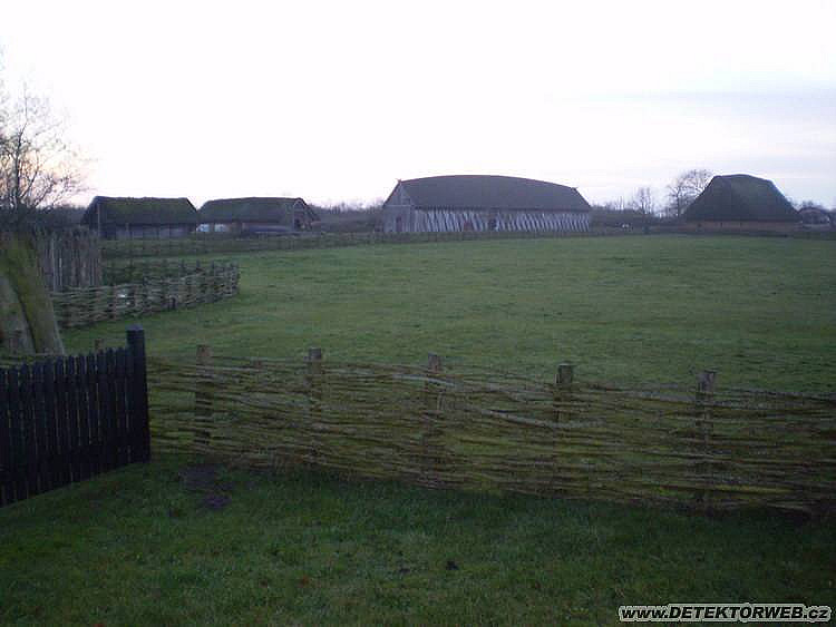 Jeden několika vikingských domů, postavených fandy experimentální archeologie, který jsme v Dánsku potkali,,, V tomto se dalo přespat, bylo připravené i dřevo u ohniště. Naše skvělá řidička, která celou dobu spala v autě a stanu, odmítla tuto možnost pohodlného přespání v teple a hlavně SUCHU(pršelo každou noc i sněžilo... ).mrzí mně to do teď...