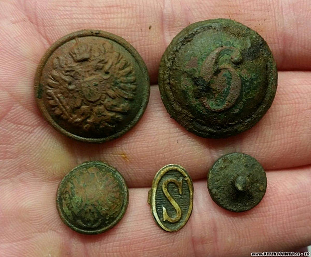 Zdravím všechny krtky. Posílám opět na pokuk pár lepších nálezů zpoza cívky detíku. Radost udělal hlavně knofl námořníka v menší velikosti, opět je z občanské války, i když v horším stavu. Zajímavá je i ta destička s tou postavou, nebo vojákem?Jinak všem pěkné nálezy a zdarec.