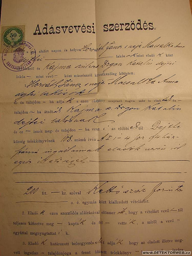 12. 11. 2009, 18:43Posledné dve fotky- kúpno predajná zmluva domu v obci Dechtice. Vydané v Trnave. Cena 200 forintov. Mohli byť v tom čase celkom pekné prachy.