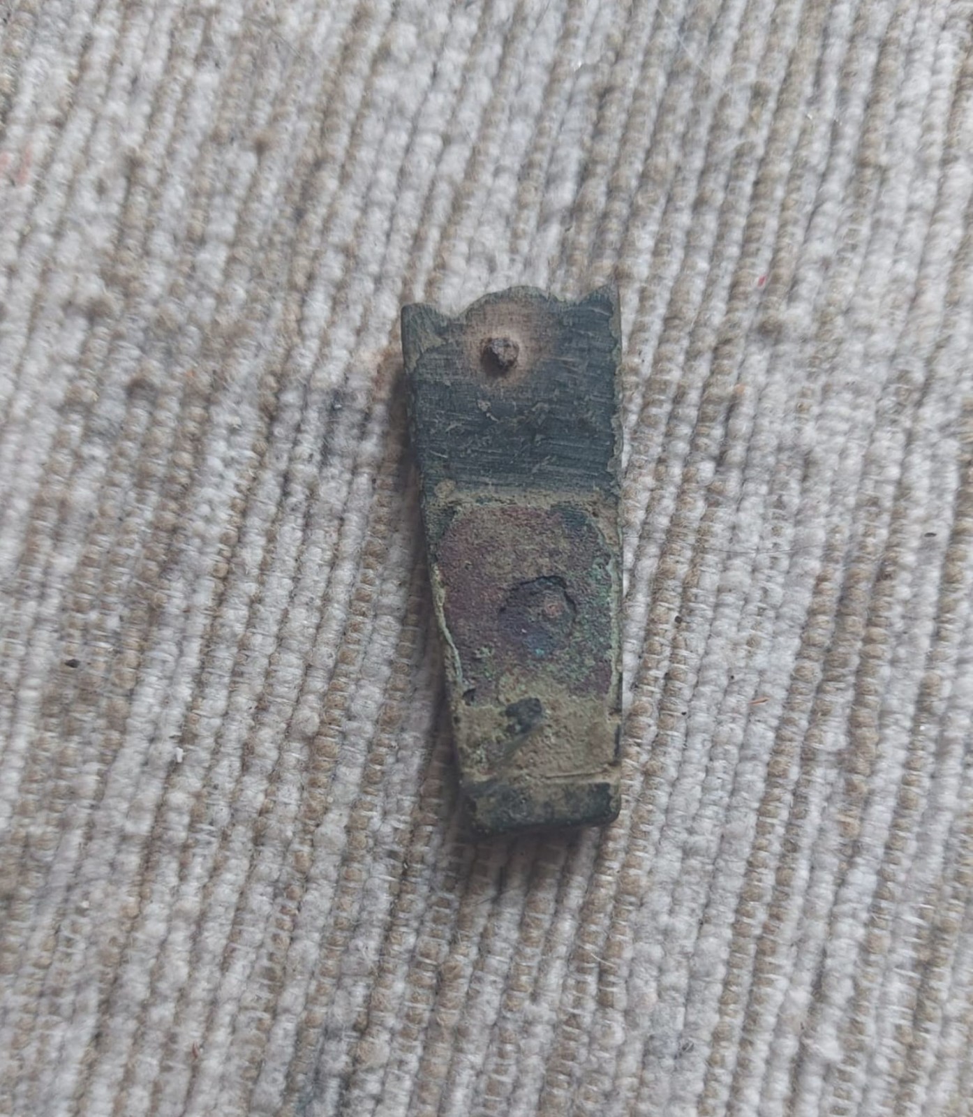 09. 08. 2023, 23:20No, jestli je to ulomené, pak to nemusí být vůbec nákončí, ale torzo knižní spony deskové dirkové. Je to opravdu jen úvaha. Ty spony se dost lámaly a někdo zase nachází jen tu část s očkem a otvorem. Do koláže, kde byla ty torza, jsem vložil tvůj nález.