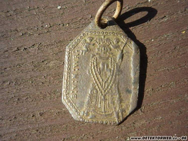 16. 08. 2012, 13:37Svátostka plechová ražená kolem r. 1700. Panna Maria stojící je P. M. Vranovská ( Vranov u Brna), na druhé straně je Panna Maria Tuřanská ( Tuřany u Brna) Obě lokality známá moravská barokní poutní místa.