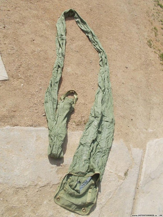 Při jarním úklidu na mne vykouklo pár věcí, a tak by mne zajímalo, jestli někdo neví k čemu sloužily. První je silonová brašna, součást nějakého padáku, nevím, nejsem toho znalec. Snažil jsem se procházet fotky takových těch základních poválečných padáků, ale nikde jsem tam podobnou brašnu neviděl, ačkoliv to určitě někdo pozná. Na fotkách je sbalená i rozbalená a nafocené značení. Podle roku přejímky je z roku 1973,takže snad součást OVP - 68,ale nevím.