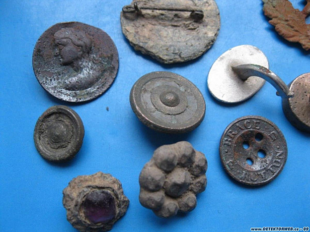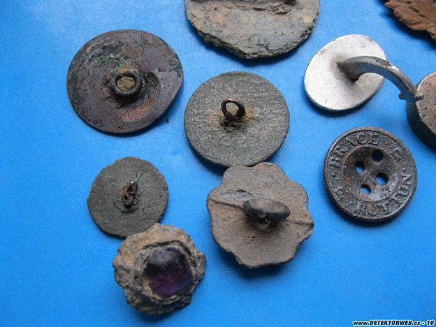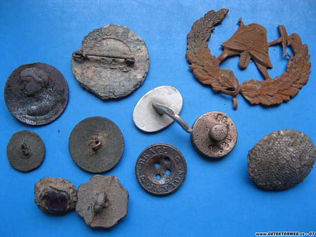 Zdravím, hromádka drobotiny, plomby, kulky, hasičský odznak, posmrtné mince, asi ucho z nějaké nádoby, nevím, myslím si, že ten postříbřený knoflík je manžetový a par pěkných knoflíků.Bingob
