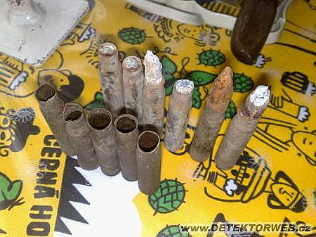 04. 01. 2010, 10:47Když už to máš doma, je lepší to změřit, ale vypadá to na 7.62x54R Používal se např. do pušky Mosin, Tokarev SVT, kulometu Maxim, DP27, nebo leteckého ŠKAS. Číslo 17 odpovídá muničce ve městě Barnaul v Rusku.