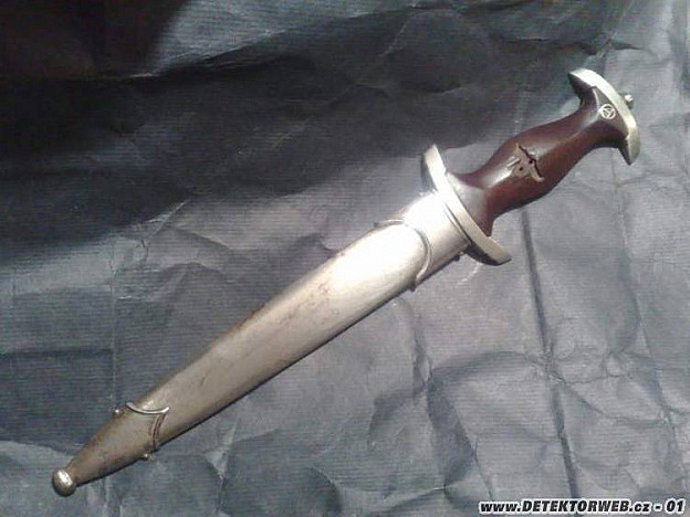 18. 11. 2011, 10:39Tuto čepel už asi do pěkného stavu aniž bys ji poškodil již těžko uvedeš. Byla to pamětní dýka SA ke konání olympijských her v roce 1936. Komplet kování by mělo být v alpace (niklu) to samé i na pochvě. Ty ji tam máš s kováním plechovým. Být tebou tak si seženu kusy co ti chybí v podobném stavu k čepeli, aby to nebylo jako pěst na oko.