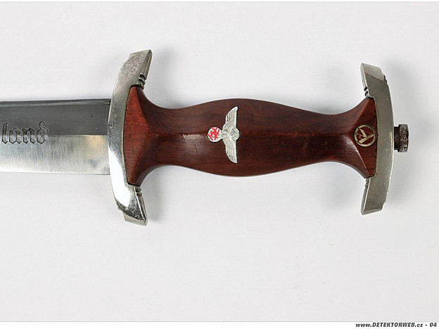 Záštity a rúčka sú z neskoršieho obdobia produkcie. Na rannej dýke SA zinkové záštity a hliníková orlička nemá čo hľadať a ku tejto čepeli nepasujú.