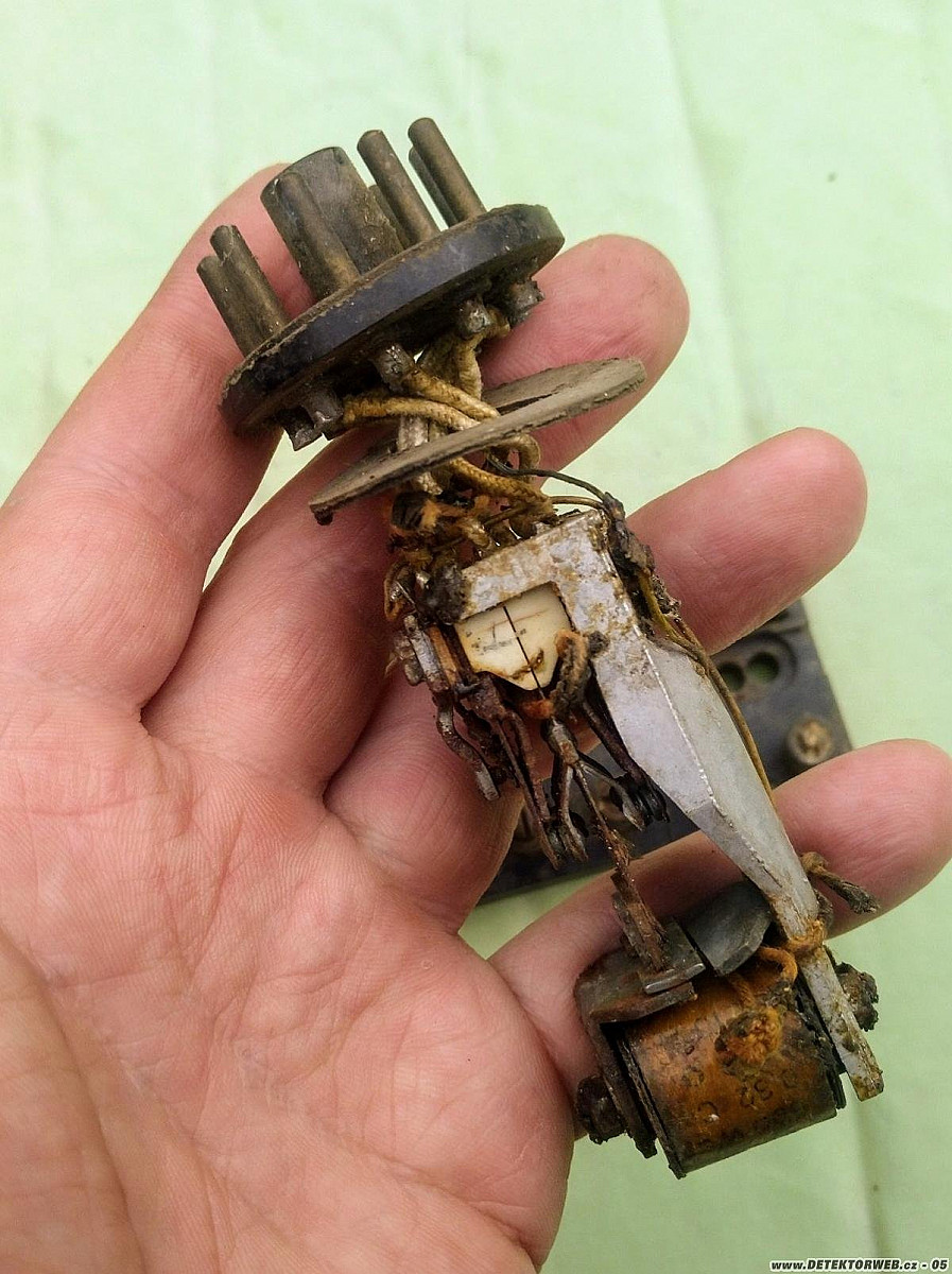 26. 09. 2022, 13:45Lampa KDD 1 je pro radiopřijímače napájené z baterií, proto má psané žhavení 2 Volty, to je napětí jednoho olověného článku používaného pro žhavení. Ta "svorkovnice" je pojistová skříňka pro motorová vozidla. To co vypadá jako koncovka je (byla) německá vibrační patrona W. Gl. 2,4a. Ne pro ženský ale pro výrobu vysokého napětí z baterií k napájení radiostanic. Chybí hliníkový válcový obal. Zasouvalo se to do patic podobně jako elektronky z důvodu rychlé výměny, bylo to velmi poruchové zařízení. Přesto se tenhle způsob napájení požíval desítky let po válce i v civilu, třeba do autorádií. Vibrační vložky se vyráběly jak v SSSR tak u nás ještě v 70. letech...