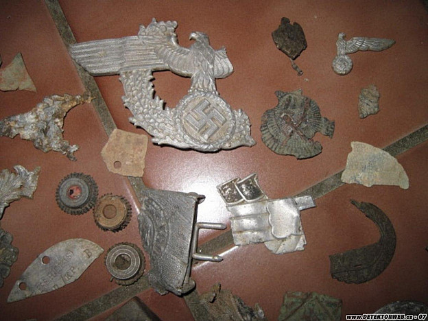 Občas je tu vidět nějaký úlomek odznaku, a tak jsem se rozhodl i já přispět svými úlomky. Vím o dvou místech na ústupovce, kde se jich dá nakutat stále dost, ale nic celé. Zřejmě tam došlo k odstrojování vojáků a nahromaděné metály pak ničili z dlouhé chvíle Rusové nebo civilisti.