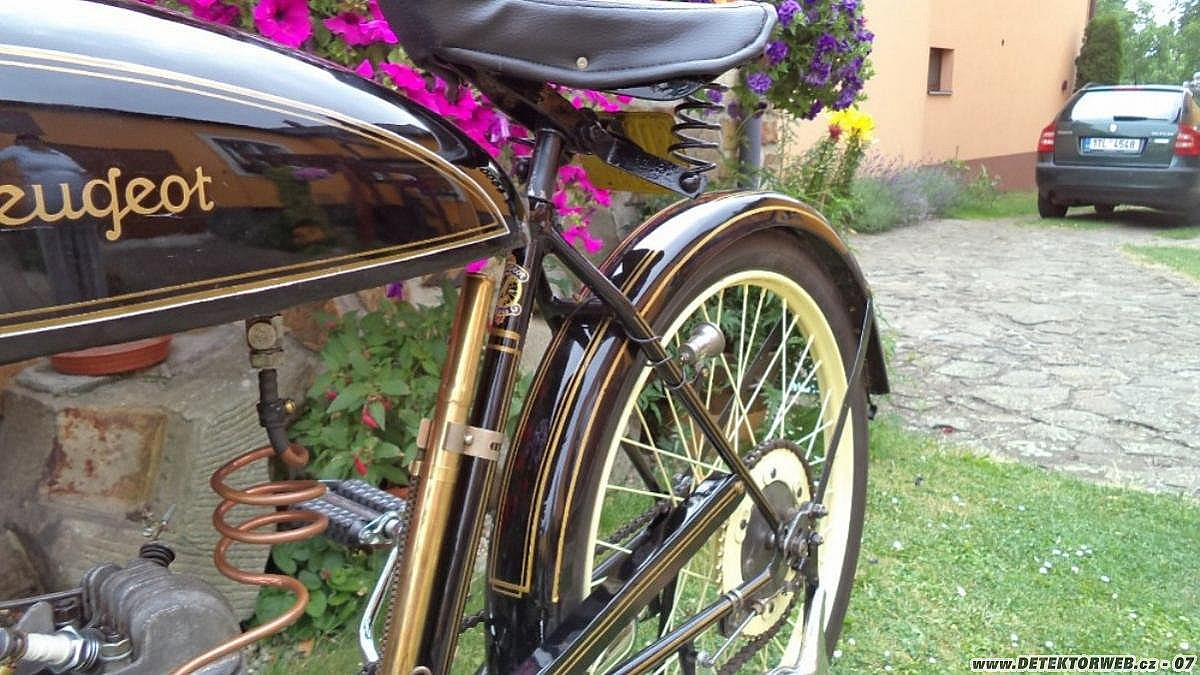 Oříškem byly pneumatiky. Nikdy bych nevěřil, že pro mě bude problém sehnat pneumatiky. Rozměr 21 palců né a né sehnat. Obrátil jsem se dokonce na firmu Michelin, která má v zahraničí jednu pobočku zabývající pneumatikami na staré automobily a motocykly. Bohužel po několika povzbuzujících emailech mezi námi z jejich strany to nějak utichlo a již se neozvali. Nakonec jsem náhodně natrefil na člověka, který si ve Francii u jedné firmy objednal pneumatiky na svého veterána. Dal mi kontakt na ně a já z radostí zjistil, že tato firma mimo mnou hledané pneumatiky nabízí ještě spoustu dílů na francouzské motocykly starší výroby. Využil jsem jejich nabídky a ochoty zaslat vše potřebné za hranice a mimo pneumatiky do Česka šlo ještě několik jiných dílů, které bych zde s obtíži sháněl. Jelikož jsem motocykl našel v Gdaňsku, sehnal jsem si místní předválečnou poznávací značku z té doby, kterou musely mít všechny jízdní kola a motocykly do objemu 100 cm³.