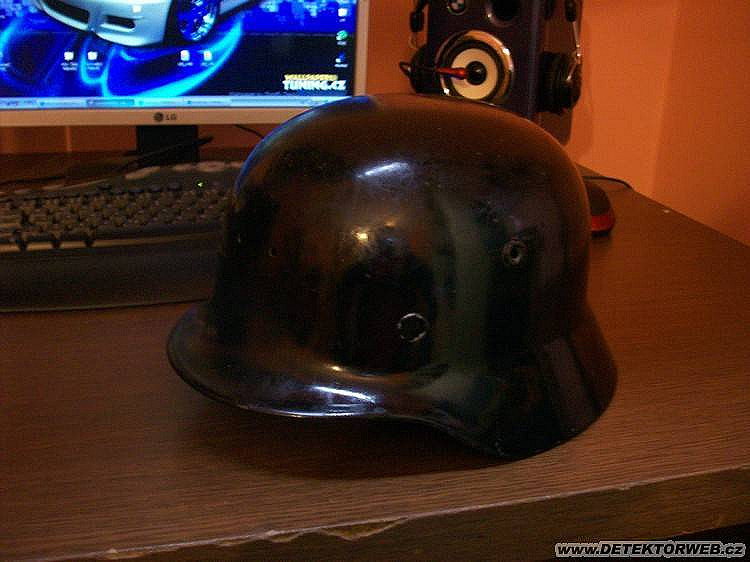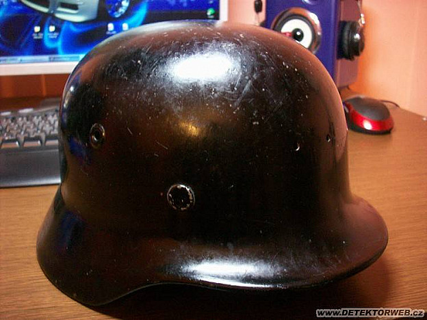 16. 09. 2008, 14:29Škoda těch děr ale jinak je ta helma super. barva se mi moc původní nezdá (nejsem expert, nevím), myslím si, že je to přebarvený na CO, mám dojem že černý helmy se jen tak za války nedělaly a barva vypadá moc nově a je lesklá. dalo by se to krásně rekonstruovat, velká výhoda je že máš origo vnitřek i nýty, díry by se daly zaletovat, helma přebarvit a máš to parádní