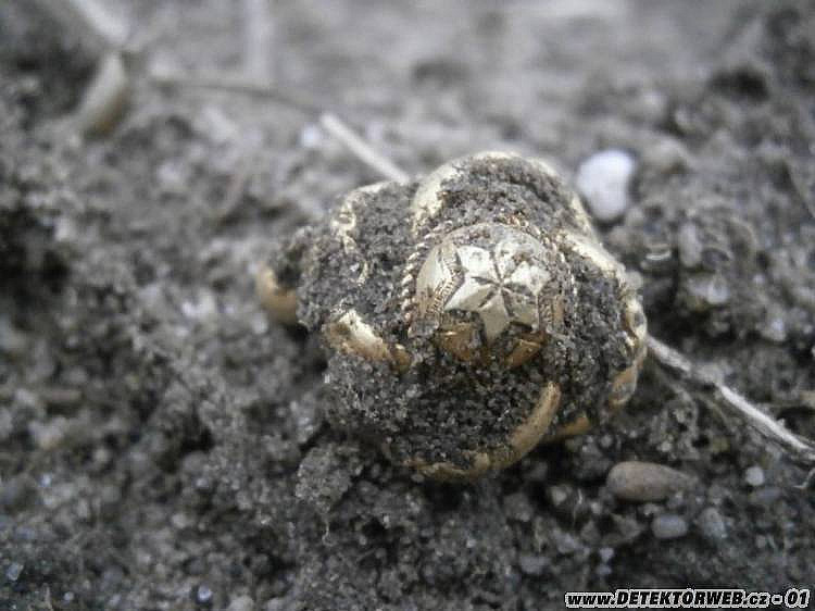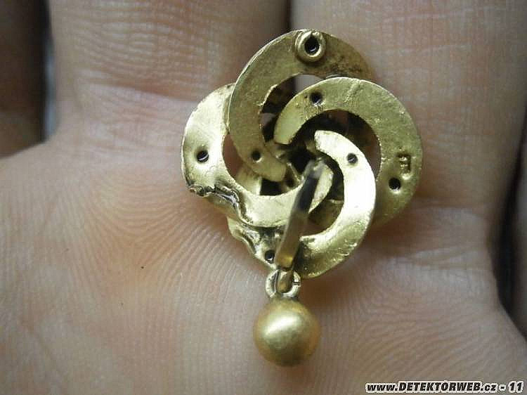22. 11. 2013, 15:47Zdar, gratulace k nálezům. K té zlaté náušnici - evidentně chybí část háčku, na kretrý se nejčastěji vyráží puncovní značky. Na zadní části náušnice (na obr. v pravé části) sice nějaká značka (možná výrobní) je, ale z fotky se to poznat nedá. Náušnice je zcela jistě dutá a podobné se vyráběly za rakouska ale i za první republiky. Často se takové zboží vyrábělo i z nízkoryzostních slitin zlata, takže ryzost nemusí být 14 karátů, ale třeba méně. Nebo může jit i o DOUBLE? Jestli na té části háčku, která u náušnice zůstala, máš puncovní značky, tak se to pokus lépe nafotit a nebo to dones do zlatnictví.