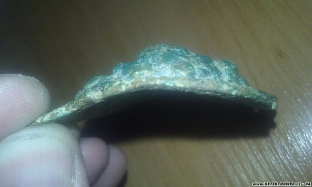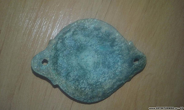 tak jsem zavítal opět na mojí oblíbenou Haberskou stezku, která probíhala naším krajem. Kamarád mi ukázal její další část, kterou jsem neznal a zároveň se ujal funkce kopáče. Bohužel jsme toho moc nenašli, snad jen tuhle vypouklou věc, podle mě to je kování z něčeho, podle kamaráda něco určitě vzácnějšího, tak to nafotil a já posílám. Já tam vidím na každé straně psa, uprostřed hlavu berana a ty další nejsem schopen rozluštit. Poradíte? Díky za názory.