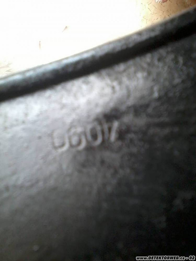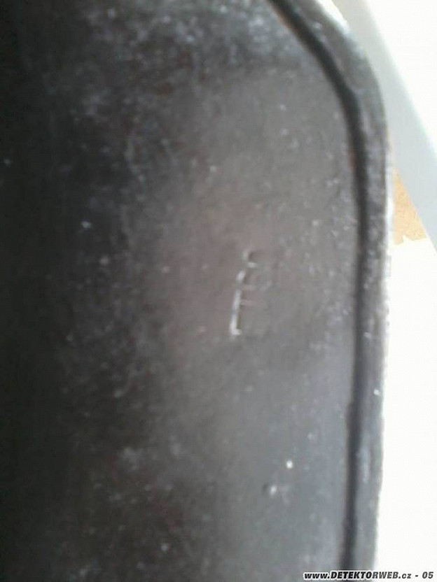 ET je značka výrobce Železárny v Thule, 60 je velikost zvonu, přilba byla na menší hlavu, tak velikost 54