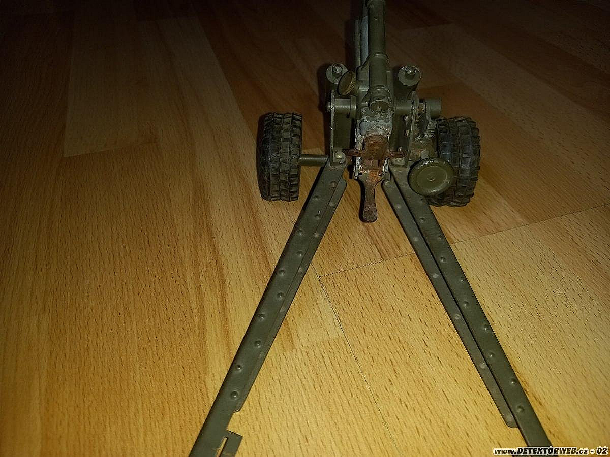 28. 04. 2022, 10:17Je to tak jak níže určil klarkon. Vyrobeno v Německu za III. Říše. Doplněk techniky k figurkám vojáků. Plechové ohýbané díly s gumovými pneumatikami lícují k zinkovému odlitku hlavně a brzdovratnému zařízení. Závěr je plechový a natahuje se dolů na pružinku. V natažené poloze se zá zajistit pákou jako u skutečného děla. Na dno hlavně se nasadí papírový kapslík a... po spuštění to dá pecku díky kapslíku z jiskrou a dýmem z hlavně. Tento Tvůj je volně inspirován německou 151mm houfnicí. Já měl jako kluk menší dělo, inspirované německou 105mm houfnicí. Jak píše klarkon, celkem dost cenná stará hračka. Má-li na sobě vlis s nápisem Märklin obzvlášť dnes v aukcích cená. Nedávej dětem na hraní! Zinkové díly jsou křehké! Má to již dnes cenu RC modelů. Tedy. Jemně ošetřit nasucho, nepřetírat starý oprýskaný nátěr a dát jej do vitríny, nebo do krabice. Dojdou li pak doma €, nafotit na E-bay. de. Prodáš sofort! Jinak v bývalé expozici pevnosti Dobrošov, u pokladen. Byla sbírka těchto plechových hraček s figurkami předválečné ČS armády. Figurky vojáčků z německých a československé po válce přemodeloval a barvičkami přemaloval jeden velice slušný a statečný pán. Hrdina Pražského povstání v květnu 1945, skaut a vězeň 2 Odboje. Muzeu na Dobrošově vše věnoval. Nyní v květnu má být toto pevnostní muzeum po rozsáhlé rekonstrukci opět otevřeno. Tak snad to tam bude vše opět... Podobná sbírka, tehdy sádrových figurek, vojáků válčicích stran Války Prusko rakouské z roku 1866. Umístěná desetiletí do roku 1991 v interiéru původní mimořádně historicky i finančně cenné expozice Muzea této války na Chlumu u Hradce Králové. Při jeho reinkarnaci na "replikárium" ZMIZELA! Autor figurek, který je nezištně pro toto muzeum zdarma vyráběl zatrpkl tak, že zemřel. Jeho dcera mně z jeho Poslední vůle pak předala hrníčky plné použitých upravovaných štětečků. Zaschlé barvičky Umbrol a krabici plnou cenné staré literatury k uniformám, ručně malované skici a studie, nedokončené figurky a formy. Vše jsem pak věnoval do depozitu Vídeňského Arsenalu. Tam je jim na polici dobře...