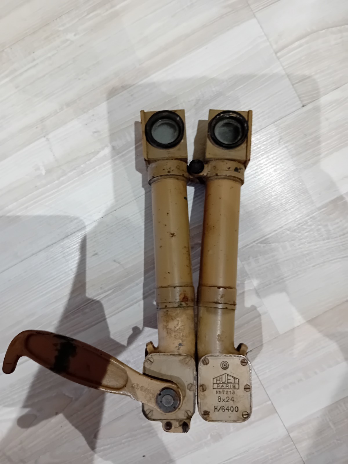 30. 11. 2025, 13:47Periskopický dalekohled vyráběný v okupované Fracii pro kvérmacht, byl to ruční zákopový periskop navržený tak, aby umožňoval vojákům pozorovat nepřátelské linie ze zákopu, aniž by museli vystrčit šišku. Tyto dalekohledy ve stylu „králičích uší“ používané francouzi již před válkou vyráběla pro skopčáky francouzská společnost Huet v Paříži, označení „H/6400“ značí rozsah stupnice v dělostřeleckých dílcích a používaly se s koženým pouzdrem. .