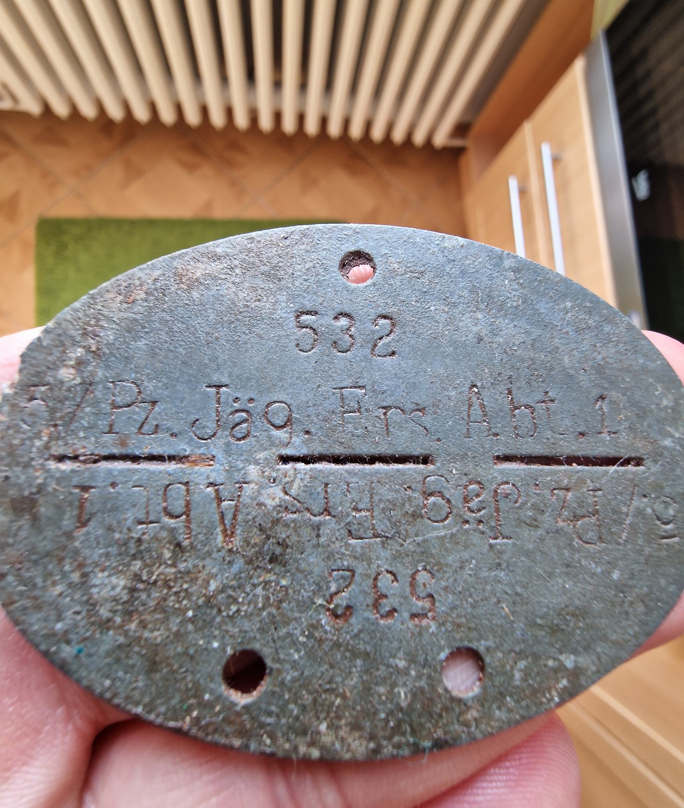 11. 04. 2026, 14:17Diese Erkennungsmarke stammt von einem Soldaten der 5. Kompanie der Panzerjäger-Ersatz-Abteilung 1