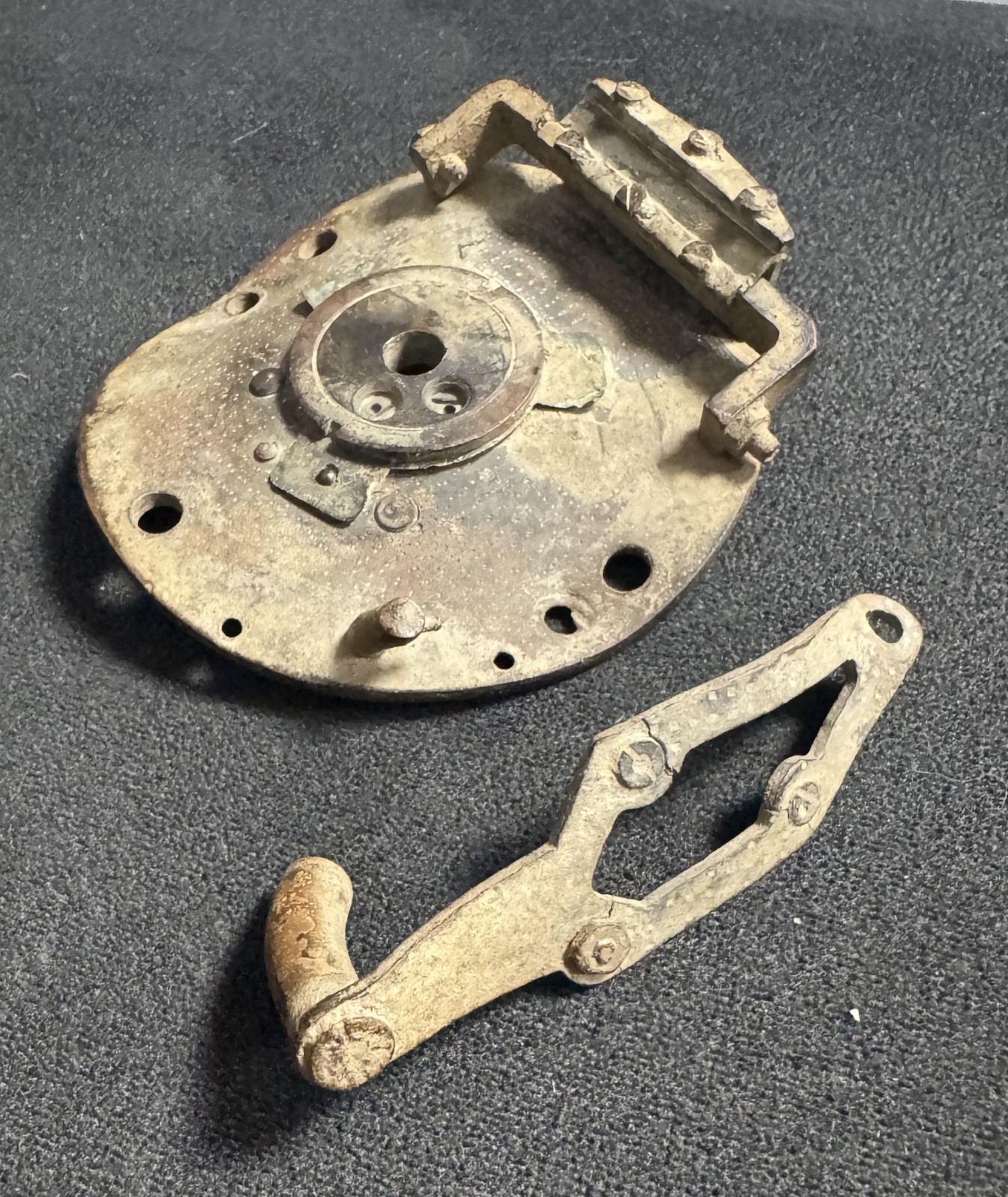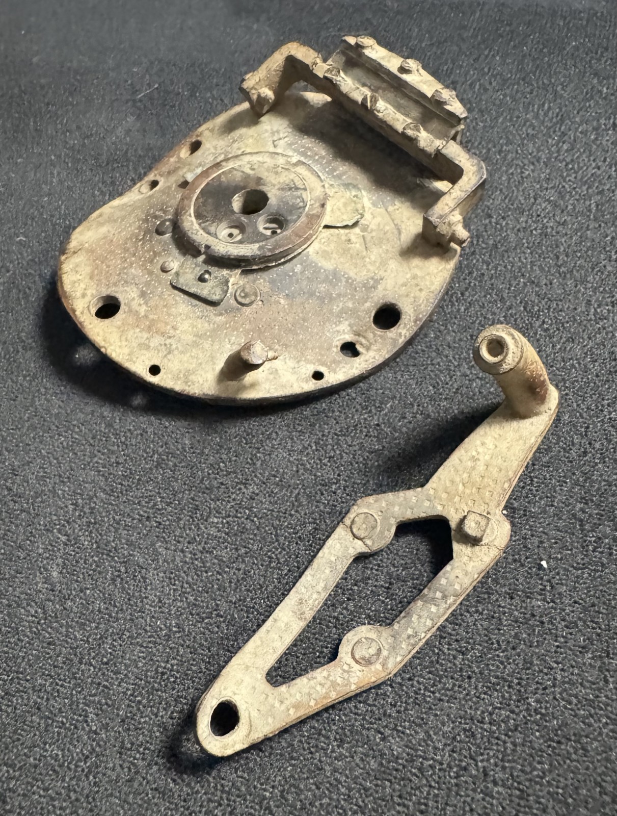 při detektorování jsem našel poblíž letiště u Chebu tento kovový kus (průměr větší části cca 70 mm) a k tomu ještě samostatnou pohyblivou páku/úchyt (viz fotky). Vypadá to jako mechanický mechanismus – Podle toho co jsem dohledal jde o součástku z letadla Messerschmitt bf 109.