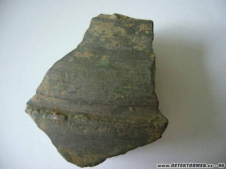 25. 06. 2013, 23:20Patrně zvon rozbytý při rekvizici za I. svět. války, kdy to bývalo pravidlem. Že by se tento kousek vytrousil rekvizičnímu komandu při transportu na dráhu? Vypadá to jako kousek z vrchní části zvonu, kde příklop přechází v čepec. Nebo že by ten kousek byl z přechodu k věnci zvonu? Babo raď.