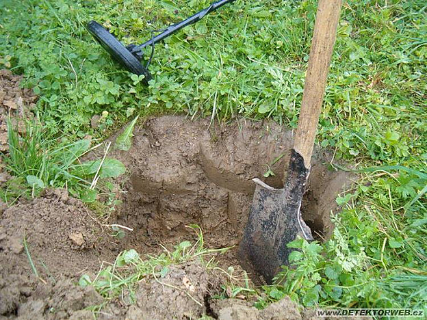 V září ho opět chytila mánie, že se znovu pozemky prohledají. Opět se stejným výsledkem, čili nic. Pak jsme šli na místo, které na jaře bylo opuštěno. Vykopala se jáma na hloubku rýče, dostali jsme se už na spodek kulturní, obdělávané vrstvy, nastoupil jíl a nic, nicméně signál stále byl, i v jámě. Ten den se skrzeva pozdní hodinu od dalšího hloubení upustilo. Zvažovalo se, že se to na druhý den zahrne. Pokračovalo se však příští den dále,... a ejhle, zaskřípnutí. Po opatrném odhrábnutí se objevilo něco okrouhlého, co bylo zatím označeno po odhrnutí další zeminy jako dno obráceného kýblu, s modrým smaltem. A vedle toho nějaké železo. To bylo identifikováno pak jako vinkl. Z pod něj byla částečně vytažena látka, po rozmuchlání zjištěno že je to zbytek punčochy. Juj, v tom pak bude jistě něco zabaleno! Nebo narazíme na nohu! Dno nádoby bylo odhrabáno jen částečně, zbytek byl ještě zakryt stěnou, tak se odrýval bok jámy. Tam kousek nějakého plechu s asi pochromovaným páskem, to bylo poněkud divné, to by asi zbojníci ve své době, tedy 16. století neměli mít, ani silonky! Tak se pomalu vrstvička po vrstvičce odškrabuje, vytáhnou se rozbité kousky skla, aha, to aby se k tomu tak lehce někdo nedostal, primitivní ochrana. Pak dno považované za dno kýblu pod kterým je to ukryto je vytáhnut a… zase kus silonky, článek ze řetězu, něco z postroje k dobytku kus podešve z boty! A vedle zase sklo, a brousek. No ti nás doběhli, chudí Valaši.