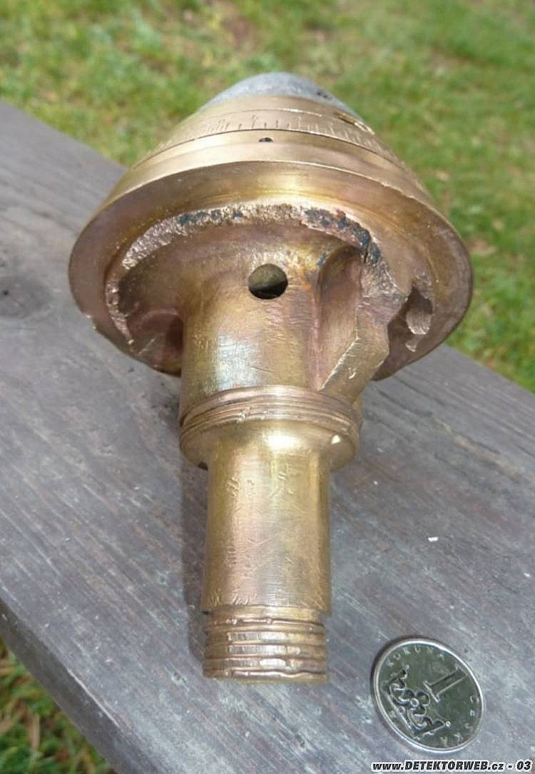 22. 12. 2015, 13:22Je to tzv. Ostrý dvojitý granát-šrapnelový zapalovač vz. 17. Používal se na 15cm Granát-šrapnelech vz. 17. G-šrapnely byly kombinované střely, propojující vlastnosti šrapnelu s výbušným granátem-v granátové hlavě byla malá nálož trhaviny= zapalovač odpálil výmetnpu náplň, ta vymetla kuličky a vystřelila dopředu gr. hlavu se zapalovačem, která po dopadu ještě samostatně vybuchla. Používala je jenom R-U a naše armáda, protože tato kombinace byla méně ůčinná než normální šrapnel i granát.