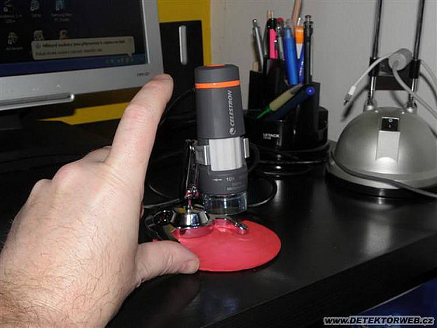 Výhodou je, že obraz např. minci si zvětšíte přímo do monitoru počítače a obraz máte zvětšený, stabilní a díky diodovému nasvícení i v reálných barvách. Byl jsem překvapen, jak snadno jsem rozluštil nápisy i na nečitelných mincích. Další výhodou je to, že vybranou vzdálenost – např. mezi písmeny si v přiloženém prográmku můžete okótovat a to s přesností na 1/100 mm. Takže nebuďte překvapení, že při uvedených zvětšeních máte část mince přes celý monitor, kótu napříč obrazovku a hodnotu Vám to píše třeba 1,07 mm A to nejlepší na konec. V momentě, kdy jste spokojen s výběrem pohledu, zvětšení a zaostření, obrázek do počítače rovnou vyfotíte a to třeba i rovnou v prográmku, takže nehrozí hnutí přístroje a rozmazání fotky A cena??? Lidová cca 1.500,- Kč.
