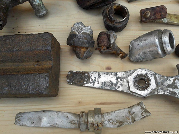 mezi Vánocemi a Novým rokem jsem vyrazil na místo, kde během války ukončil svou pouť Junkers Ju 88. Šel jsem spíše na procházku, a tak jsem vzal detektor s sebou. I přesto, že během války bylo místo uklizeno, všude to pípalo. V okolí dopadu jsou do dnešního dne spousty drobných i větších úlomků. Jelikož bylo brzy tma, tak jsem musel odejít. Díky vytíženosti jsem se na místo vrátil až před čtrnácti dny a ještě si zahledal, dokud bylo pouze provláčeno a ještě nestačili zemědělci zasít. Po každém kopnutí jsem místo na poli dal do původního stavu. Strávil jsem velice příjemný čas na čerstvém vzduchu a ještě něco našel. Dokonce i ruskou nábojnici. Jak řekl můj kamarád, tím ho určitě sundali. Přikládám fotky některých nahrubo očištěných kousků, jež jsem našel. V případě, že by jste věděli, z jaké části letounu jsou nalezené úlomky, prosím napište.