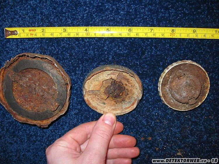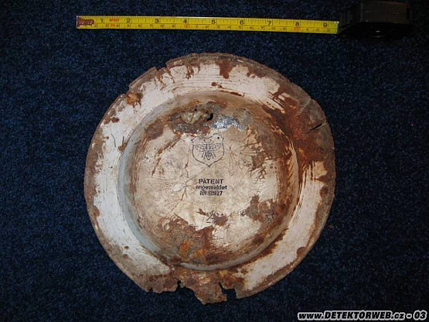 16. 12. 2014, 08:35Polní láhev některé z politických organizací třetí říše. Hliníkové víčko s průřezem je pro maďarskou polní láhev. Průřezem procházelo očko a celé víčko bylo nalisováno na korkovém špuntu.