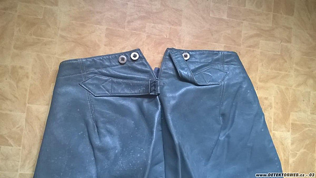 dostal jsem darem kalhoty po panu strážmistrovi z Osečné, mají německý štítek ale nedokážu si je nikam typově zařadit. Na papírovém štítku je datum stříhání 12.4.42, ale nejde zaručit že jsou opravdu od těch kalhot. Materiál je velmi jemná kůže, možná kozinka, a dalo by se věřit že jsou minimálně nošený. Zarazilo mě to místo šití - Kiel, mohlo by to být něco vojenskýho?
