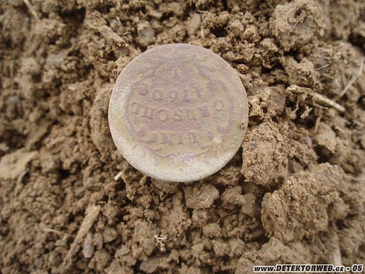 Země mi vydala pár svých pokládků a tak jsem je zachytil obrazově i pro Vás. Kámen je z lesa a je na něm číslo, myslím si, že to bylo označení pozemku majitelem podle čísla popisného jeho domu. Drobáky jsou z jedné díry, celkem 28 kousků, ale šrotovka. Stříbrňáček a měďáčky potěšily, křesadla je jen kousek, škoda. Závažíčko bylo asi dlouho používané. To kování si myslím, že je ze staré pistole. Potom jsem ještě hrábnul zbytky nějaké staré techniky. Na místě krom tohoto šrotu byla německá světlice a zbytky kování od beden. Ty písty jsem trochu rozfotil. Nevěděl by někdo z jaké jsou techniky?