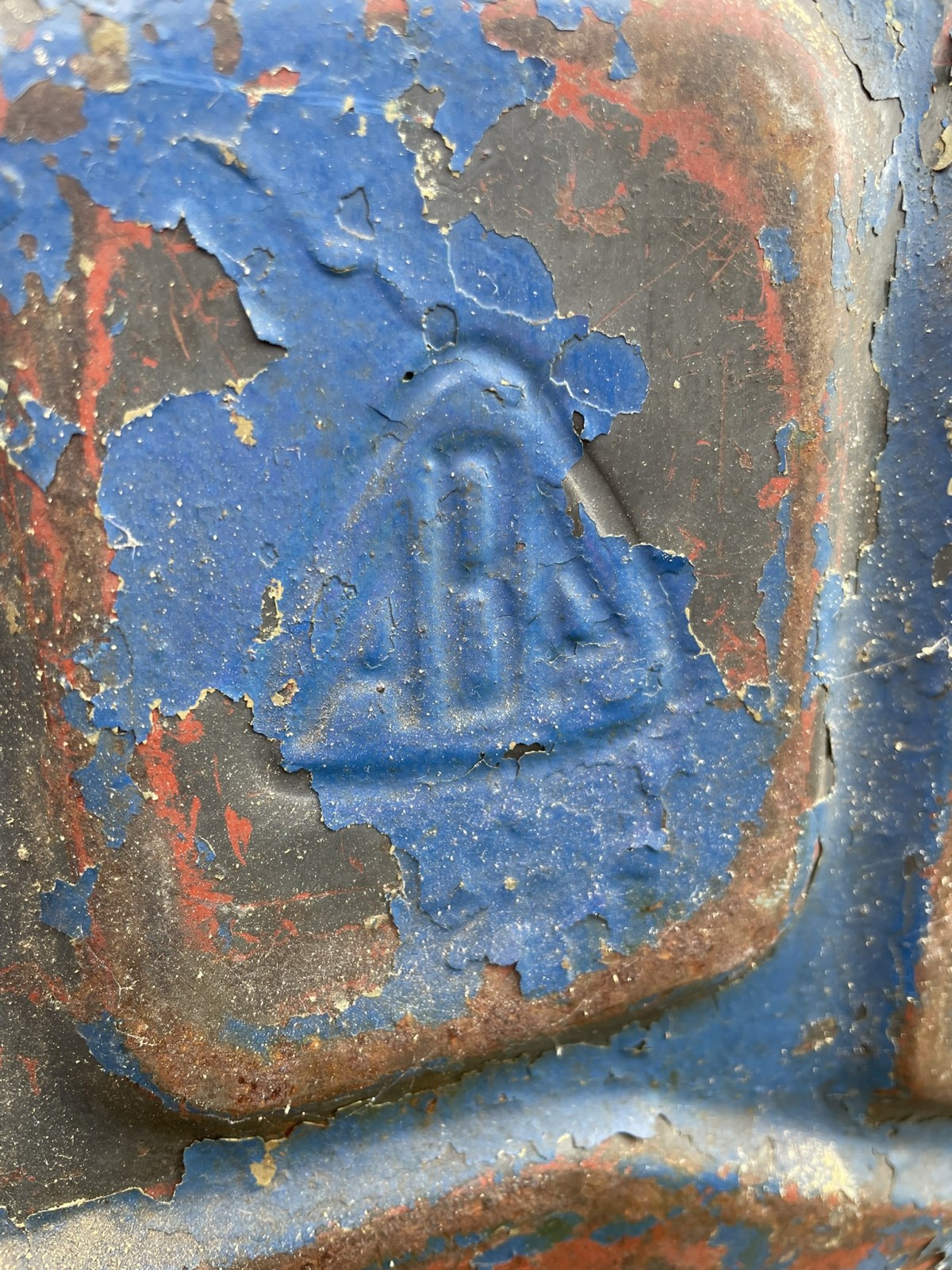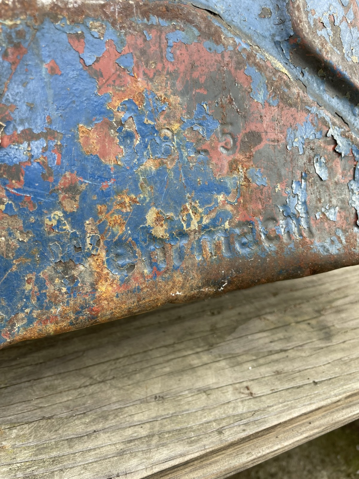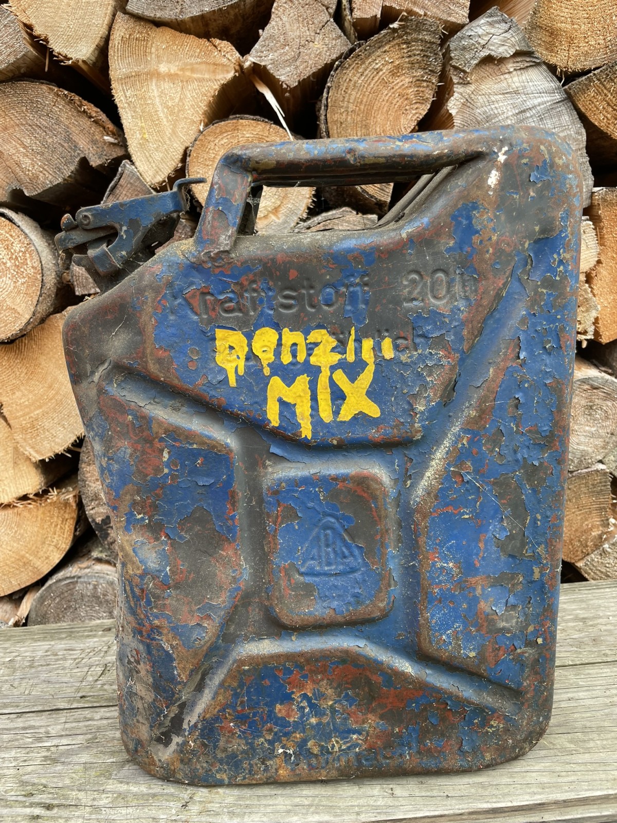 Kanistr (SS) včera nalezen a dnes úspěšně vyšmelen na našem pobočném podniku, kde byl stále v užívání pro převoz nafty. Druhý kanistr (Wehrmacht) je kovošrot z jara. Dokázal by mi někdo říci původní barvu toho modrého? Snad ta tmavě šedá? Když se podívám z blízka, tak překrývání barev vypadá následovně - červená, snad základní - tmavě šedá - občasné fleky tmavě žluté - a samozřejmě asi kutilsky modrá, která se loupe.