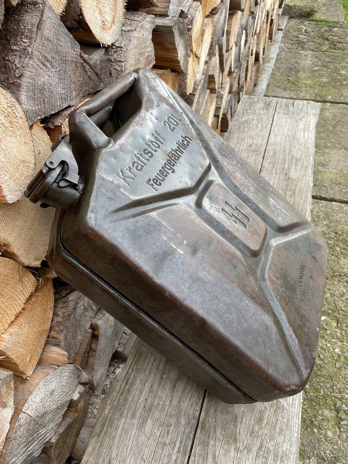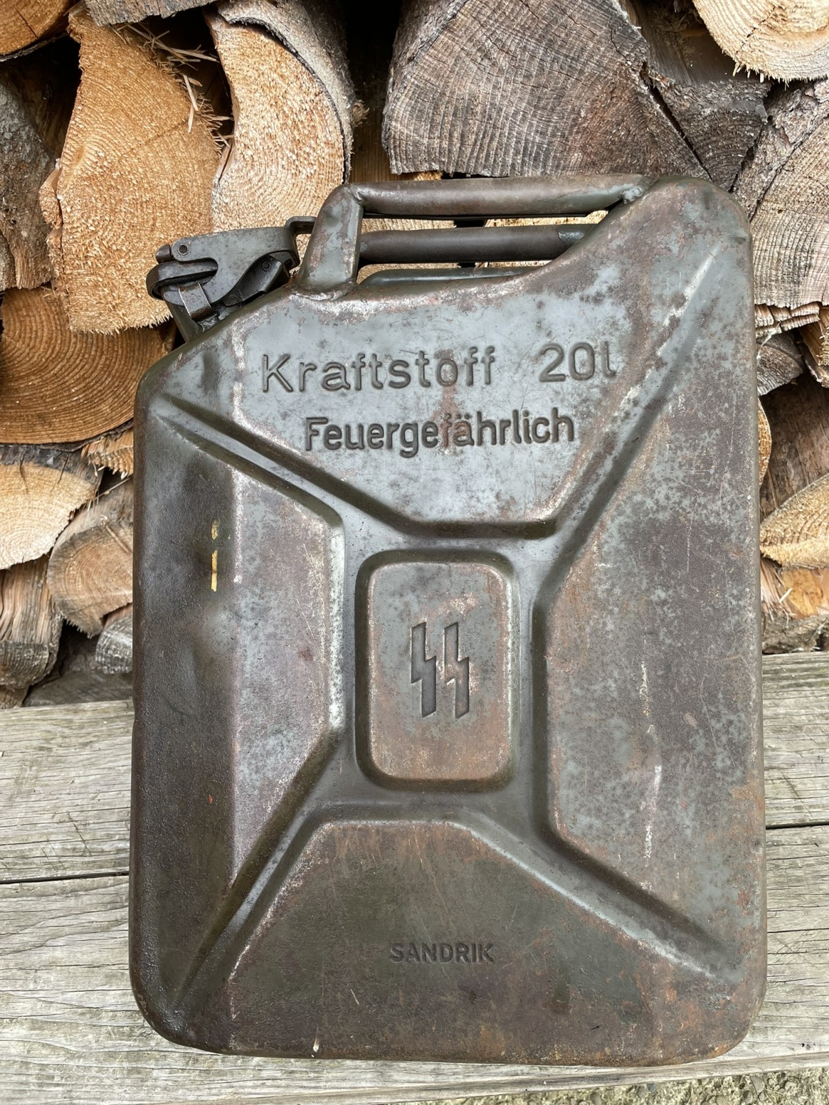 19. 10. 2025, 01:39Četl jsi vůbec můj popis? Jedná se o dva různé kanistry. Nic jsem nemyl, neupravoval. Jsou vyfoceny tak, jak se ke mne dostaly. Ten modrý Wehrmacht jsem našel v kovošrotu letos na jaře a ten "hnědozelený" Waffen ss jsem teď vykoupil z podniku, kde jej už odnepaměti používali na převoz nafty do stroje.