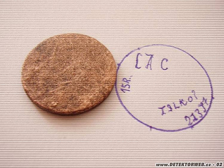 Nejsem válkař, ale těžko by se falzum dostalo na louku do země a kolega, údajně válkař, to určil hned na místě. Na značce je něco jako R... I po vyčištění jsou na kruhu vidět stopy stáří.