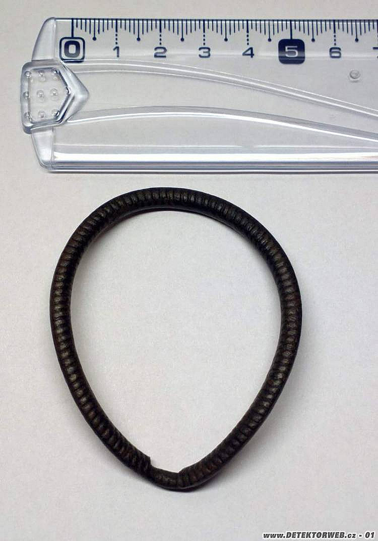 se mi podařilo najít nazelenalý kroužek uvedený v příloze. Bohužel je trochu zprohýbán polní technikou. Nejprve jsem ho, kvůli preciznímu zpracování, považoval za cosi ne moc hodnotného a starého jen pár desetiletí. Většina keltských náramků přeci vypadá jinak, ne? . Až při návštěvě kutnohorského muzea na mě v expozici vykouklo něco hodně podobnému s popiskem keltský náramek.
