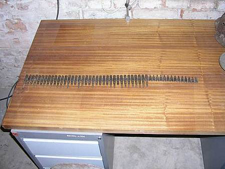 Takže spousta přileb, většina německých. Na některých se částečně dochovalo i označení. Dva kulometné pásy, jeden z MG, druhý zatím nevíme (poraďte). Perfektně zachovaná sumka. Schránka na náhradní hlaveň k MG i s hlavní. 2 ks masek, válec (myslíme si, že je z motocyklu BMV - poraďte), filtr k masce, 2 ks hlavní k Mauseru. Dále zdobená hilzna, kožená brašna (nevíme na co)a náměr ke kulometu (nevíme k jakému).