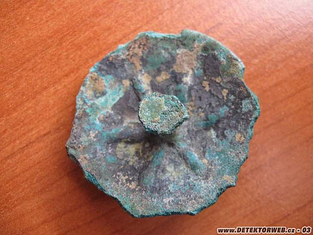 29. 05. 2012, 23:15Má to sice krásnou patinu, ale moc staré to není. Stačí se podívat na ty žebra na zadní straně. Knoflík to není.