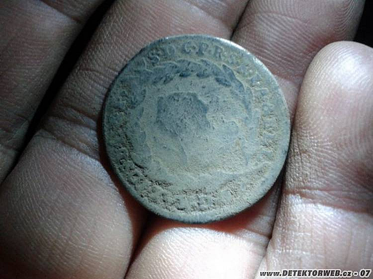 Nálezem stříbrné koruny (viz předchozí příspěvek) se mi opět otevřela úžasná, , vlna“ a z každého hledání jsem si přinesl něco stříbrného. Nejprve běžný šestikrejcar 1849 z nedalekého políčka, potom starý stříbrný prsten (bez puncu) s iniciálami I. H. na vnitřní straně (uměl by někdo určit stáří?) ze sousedního pole. Další prsten s označením 800 na mě čekal společně s maďarskými knoflíky v rusolágru v lese. Z nočního hledání jsem si přinesl deseti krejcar Maximiliána Josefa III. Bavorského z roku 1774.